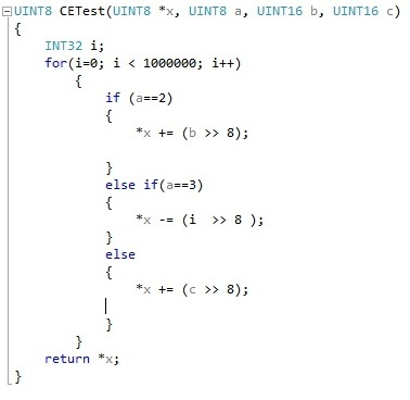 Almost both the compilers are generated the same instruction but the opcode generated is different for WEC7 and WEC2013. Most of the opcode is 16bit in size, instruction fetch time is reduced for WEC2013, since the instructions generated are ARMV7T2 (Thumb2). Figure C) shows the execution time comparison between WEC7 and WEC2013 for CETest() function call.