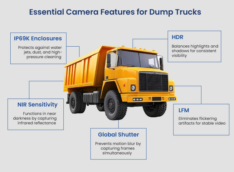 This blog offers expert insights on how cameras work in dump trucks, what types of cameras they need, and which imaging features truly matter.
