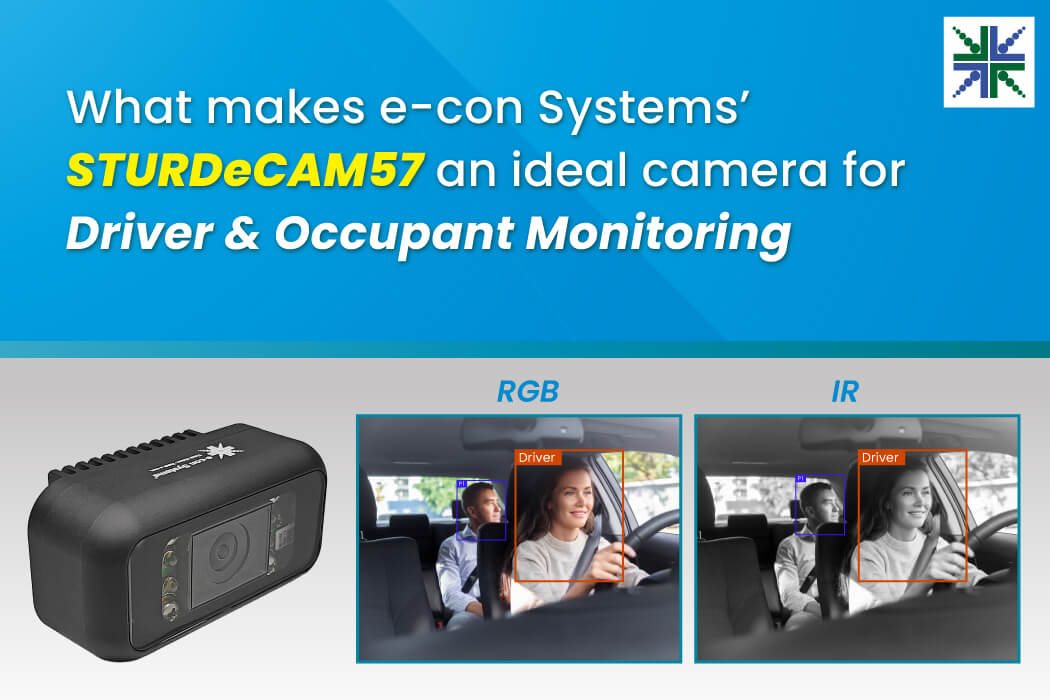 Since 2003, e-con Systems has been designing, developing, and manufacturing OEM and ODM camera solutions for several industries. Building on this experience, we are about to introduce STURDeCAM57 — a 5MP global shutter RGB-IR GMSL camera designed for driver monitoring, occupant monitoring systems, industrial automation and so on.